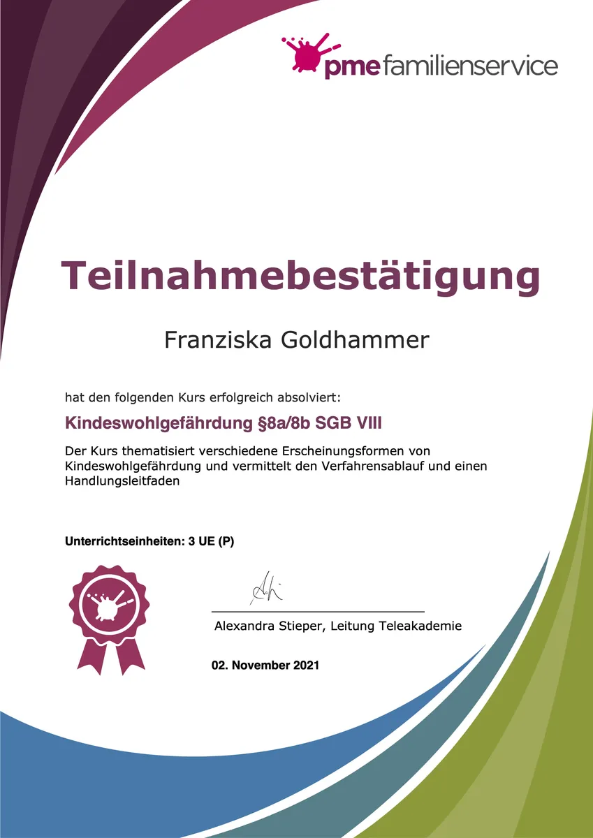 Teilnahmebescheinigung "Kindeswohlgefährdung $8a/8b SGB VIII""